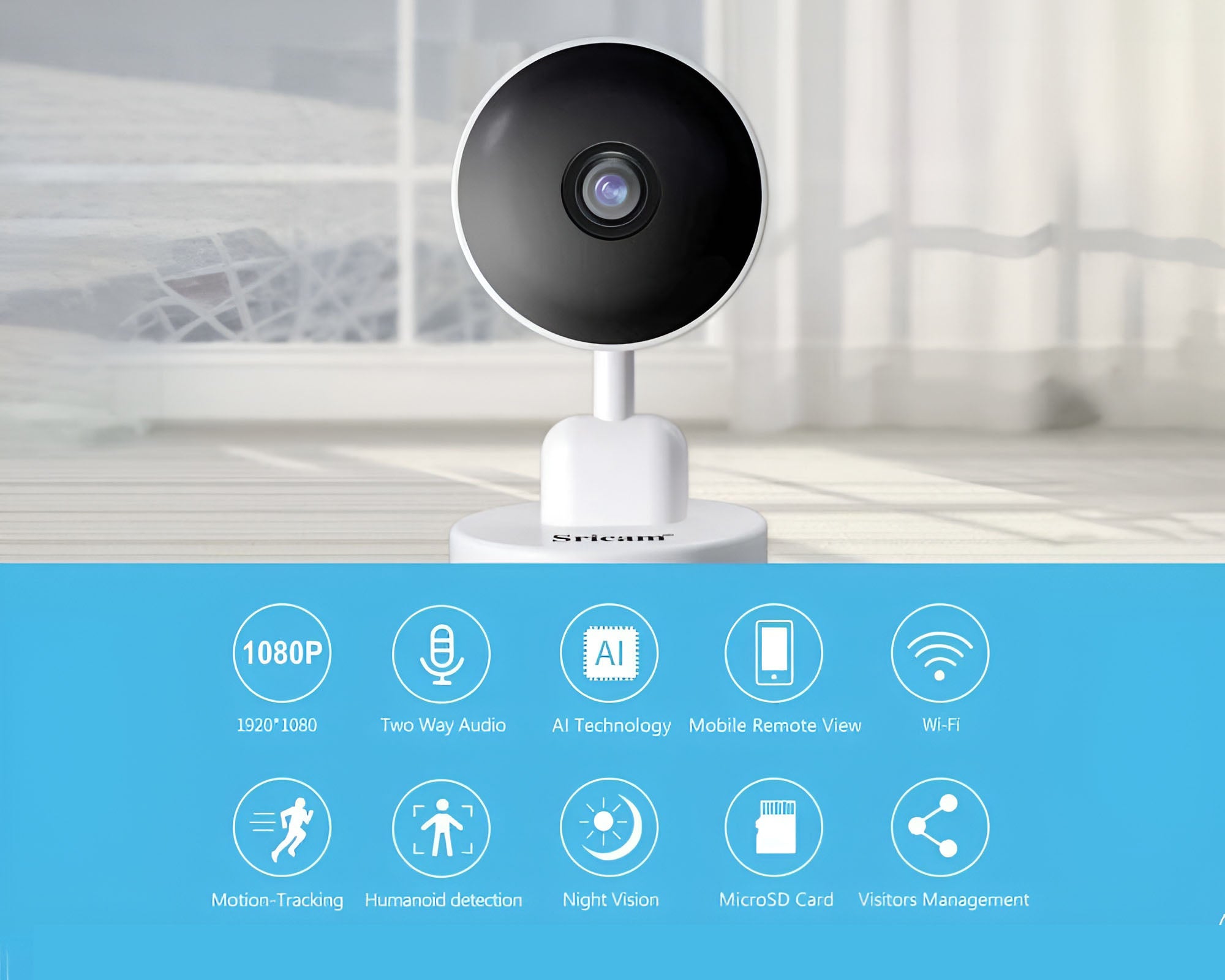 Secure your home with the SP027 1080P AI Smart WiFi Wireless Security Camera. Features humanoid detection, motion tracking, night vision, two-way audio, and flexible storage for indoor monitoring.1080P AI Smart WiFi Security Camera – Motion Tracking & Two-Way Audio
