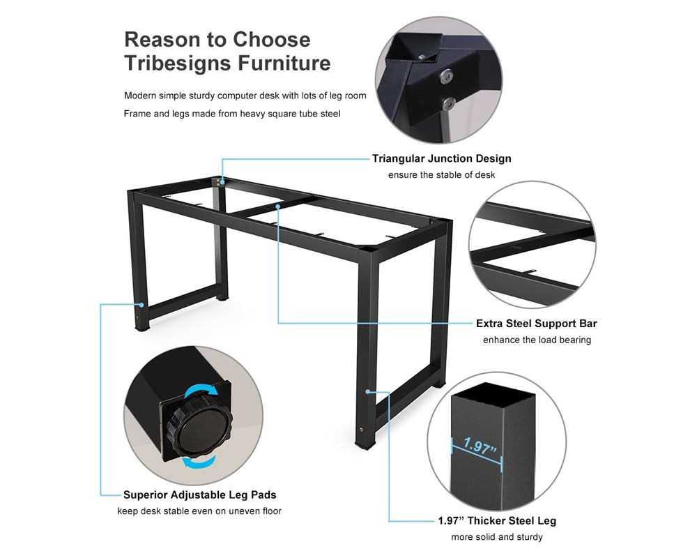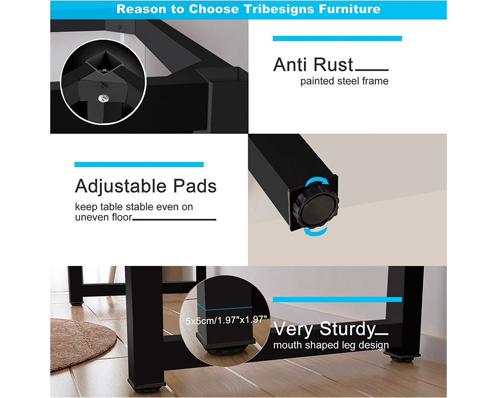 Adjustable Foot Pads: Keep the desk steady on uneven floors with adjustable foot pads for Computer Desk enhanced stability.