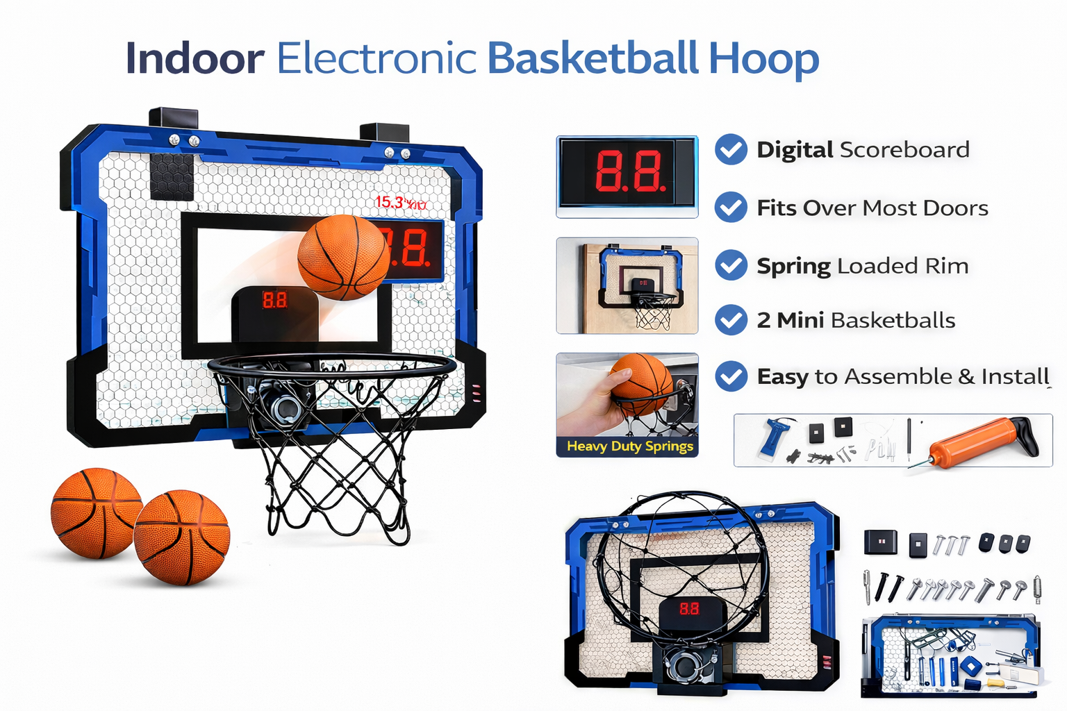 Play anytime with this Mounted Basketball Hoop. The Door Basketball Hoop is designed for indoor fun, skill development, and active entertainment. This Mini Basketball Hoop combines quality, convenience, and excitement in one compact sports game for all ages.