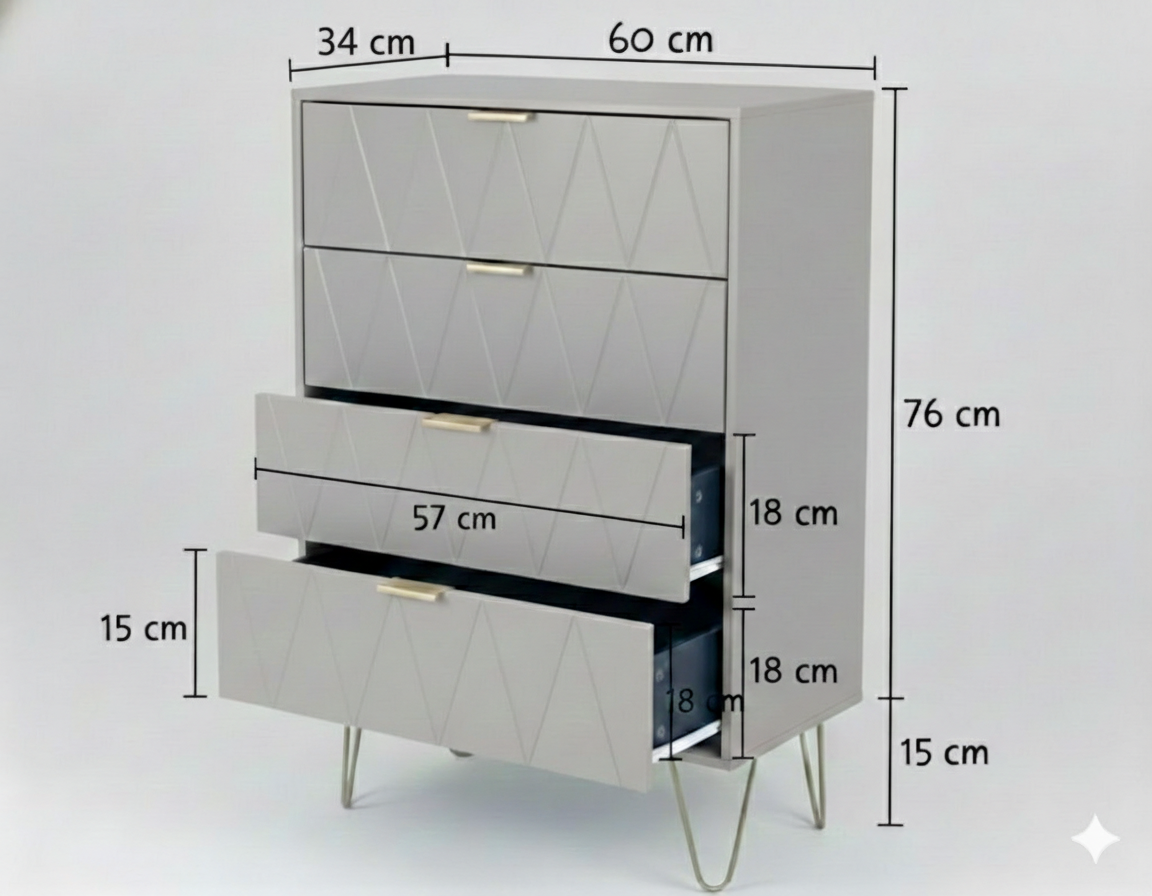 Spacious Storage: Four large drawers in this Tall Boy provide ample room for clothing, accessories, and essentials.