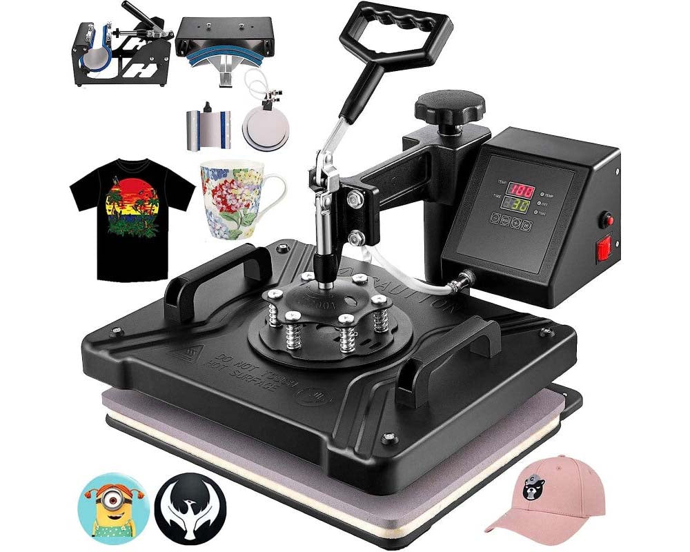 This Heat Press Machine Transfer T-Shirt Printer is designed to transfer custom images onto various surfaces, including T-shirts, cups, hats, and plates, making it versatile for personal or commercial use.