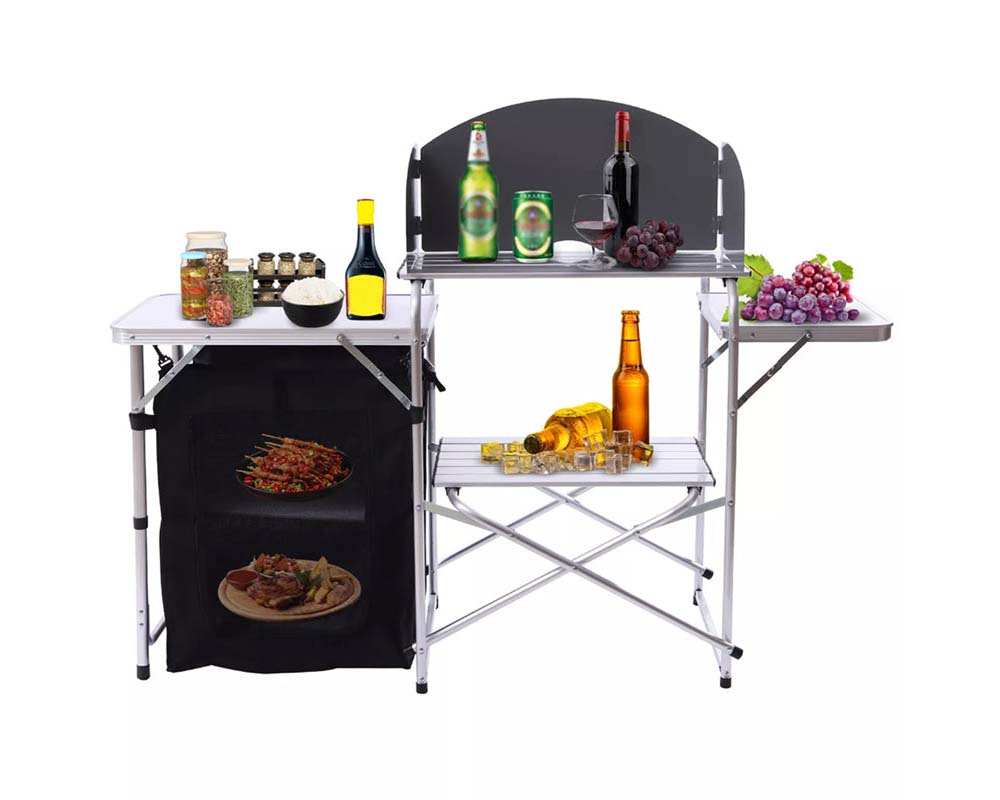 Perfect for your outdoor cooking needs, this folding cooking table is designed for convenience and durability. Ideal for camping, picnics, barbecues, and backyard parties, this portable kitchen setup ensures you have everything you need for a great outdoor cooking experience.