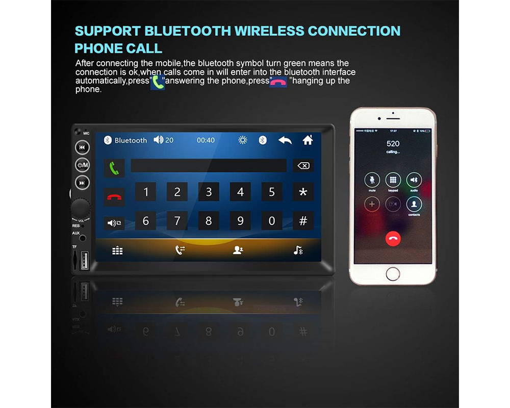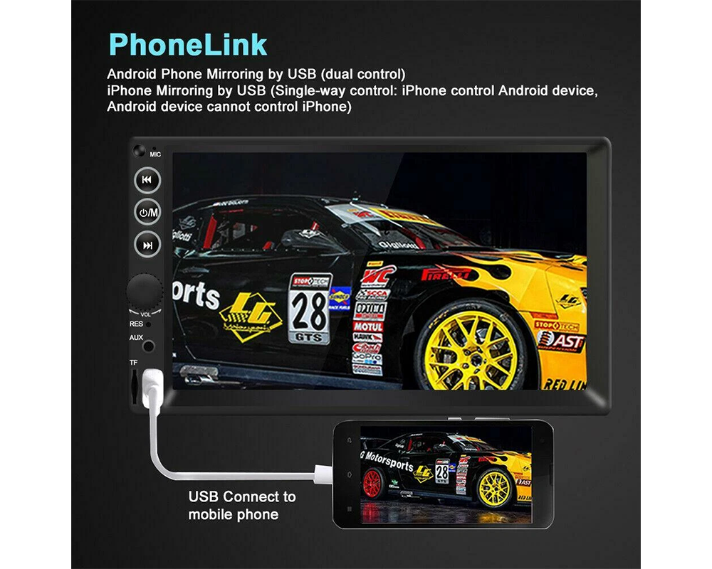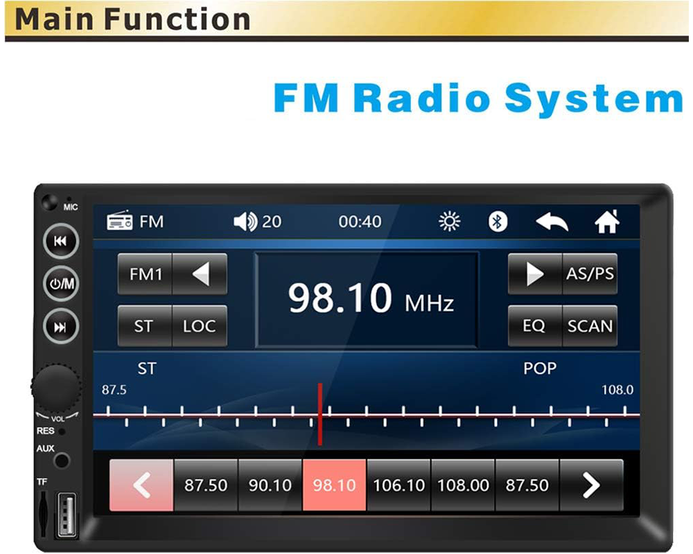 This 7 inch car stereo supports Bluetooth hands-free calling and wireless audio streaming, allowing safe communication while driving. With built-in Bluetooth 2.0 and A2DP, this Bluetooth car stereo pairs easily with smartphones for smooth music playback and clear calls. The MP5 player car stereo also includes FM radio with 18 preset stations and automatic memory storage for quick access to your favourite channels.