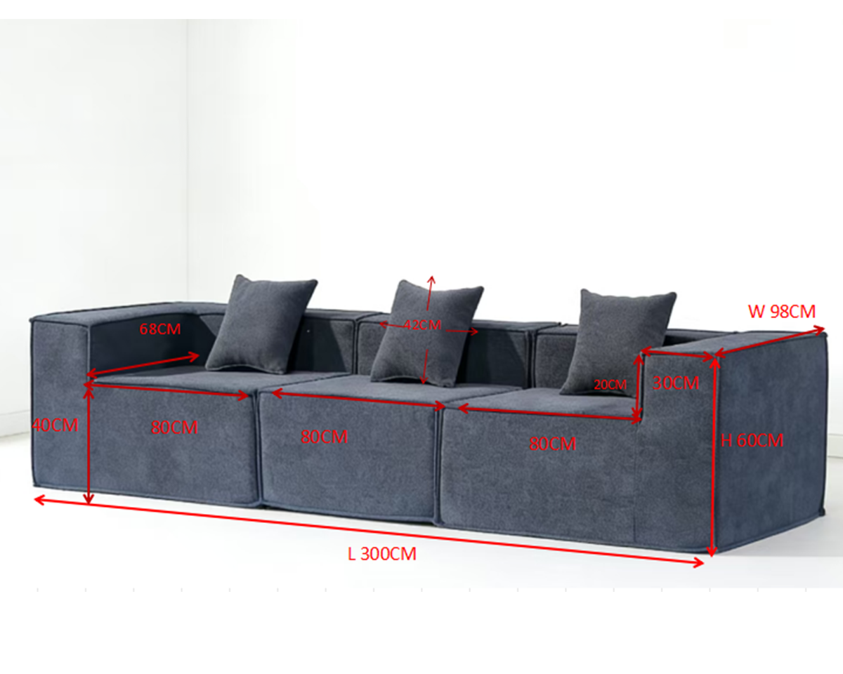 Modern 3-Seater Modular Fabric Sofa 300cm – Compressed Lounge Couch