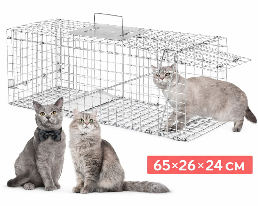 One-Door Animal Trap for rabbits, stray cats, squirrels, raccoons, and moles. Perfect for urban wildlife rescue with a handle for safe and humane trapping and release. Size: 65 x 26 x 24cm