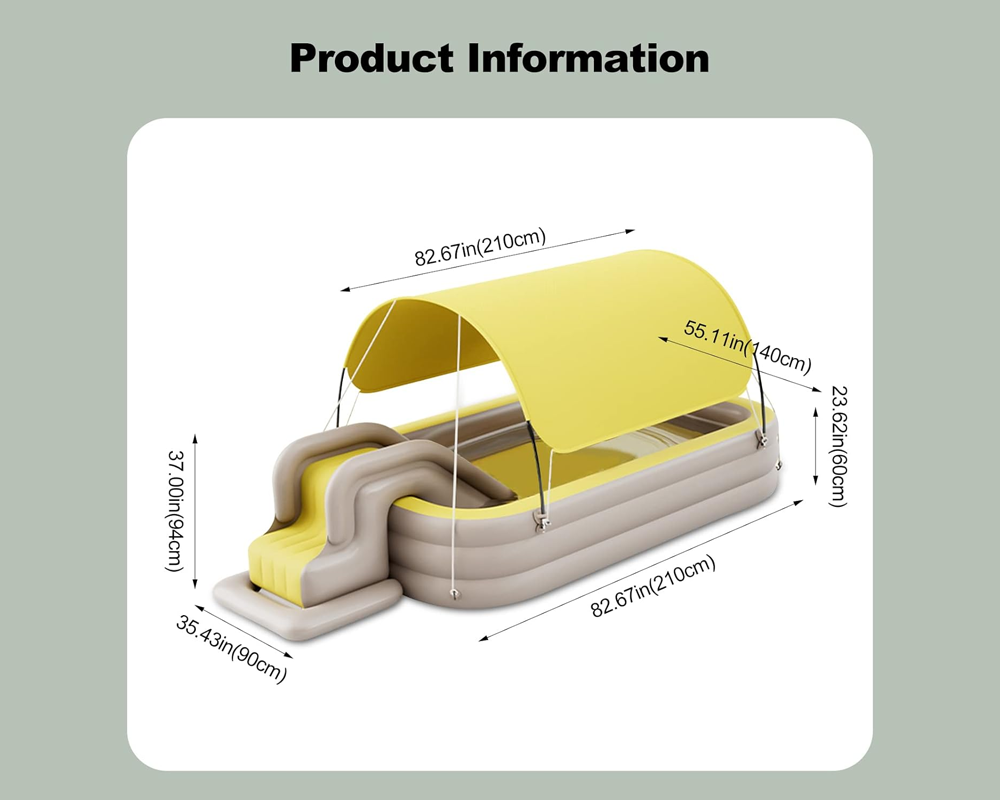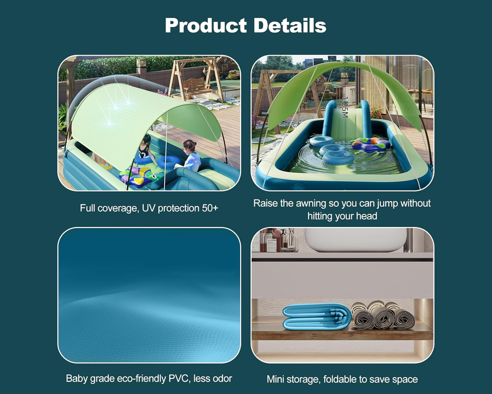 • Full Coverage Shade Awning: Raised canopy blocks harsh sunlight and UV rays, keeping the inflatable swimming pool cooler and safer during hot summer days.