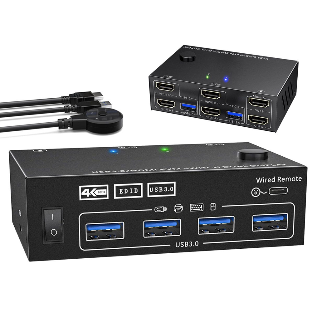 Elevate your multi-PC setup with the Dual Display USB 3.0 Dual Monitor KVM Switch, perfect for streamlining workflows and maximizing screen real estate. Order now for a seamless computing experience!