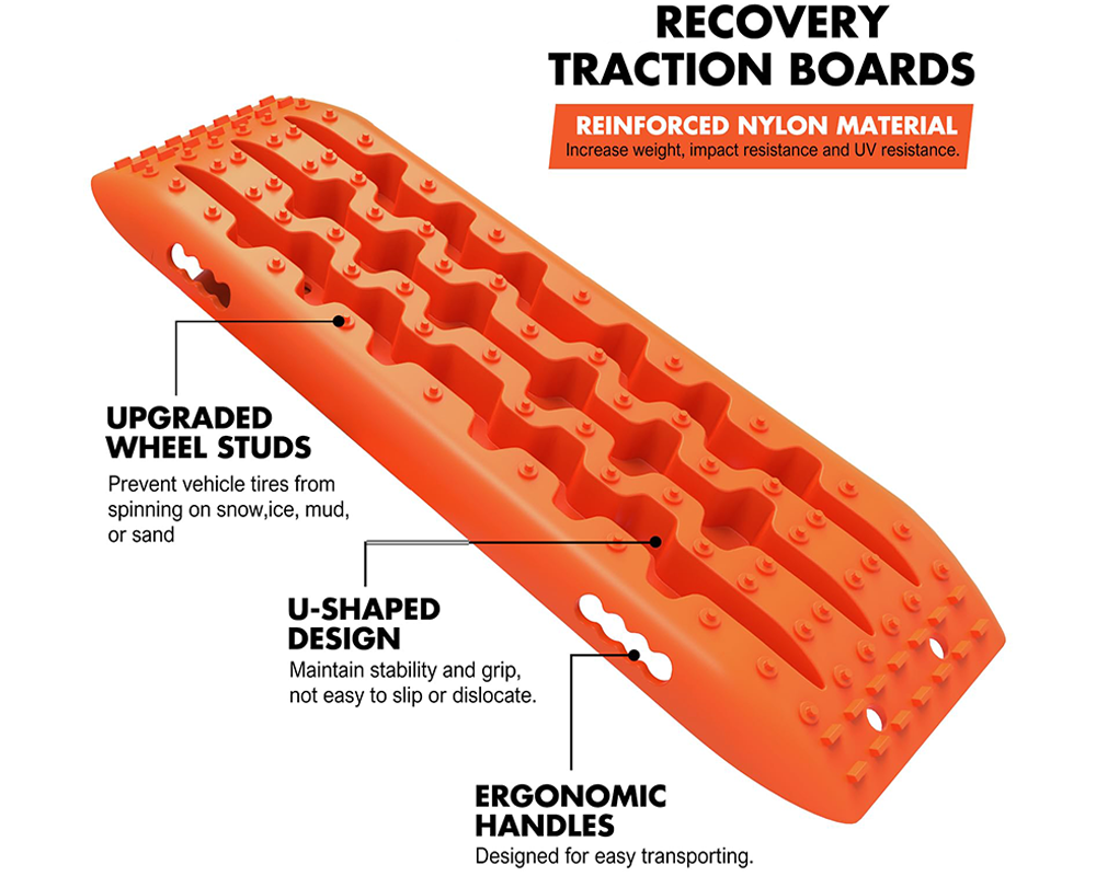• Anti-Slip U-Shape Teeth: Designed with an aggressive tread pattern, these Recovery Tracks maximize tire grip and prevent slipping or sinking.