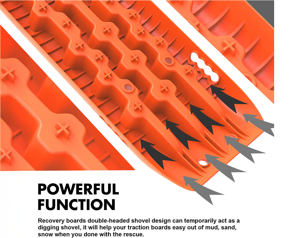 • Multi-Functional Design: Your Recovery Tracks also double as shovels for quick debris removal, thanks to their curved and easy-to-handle shape.