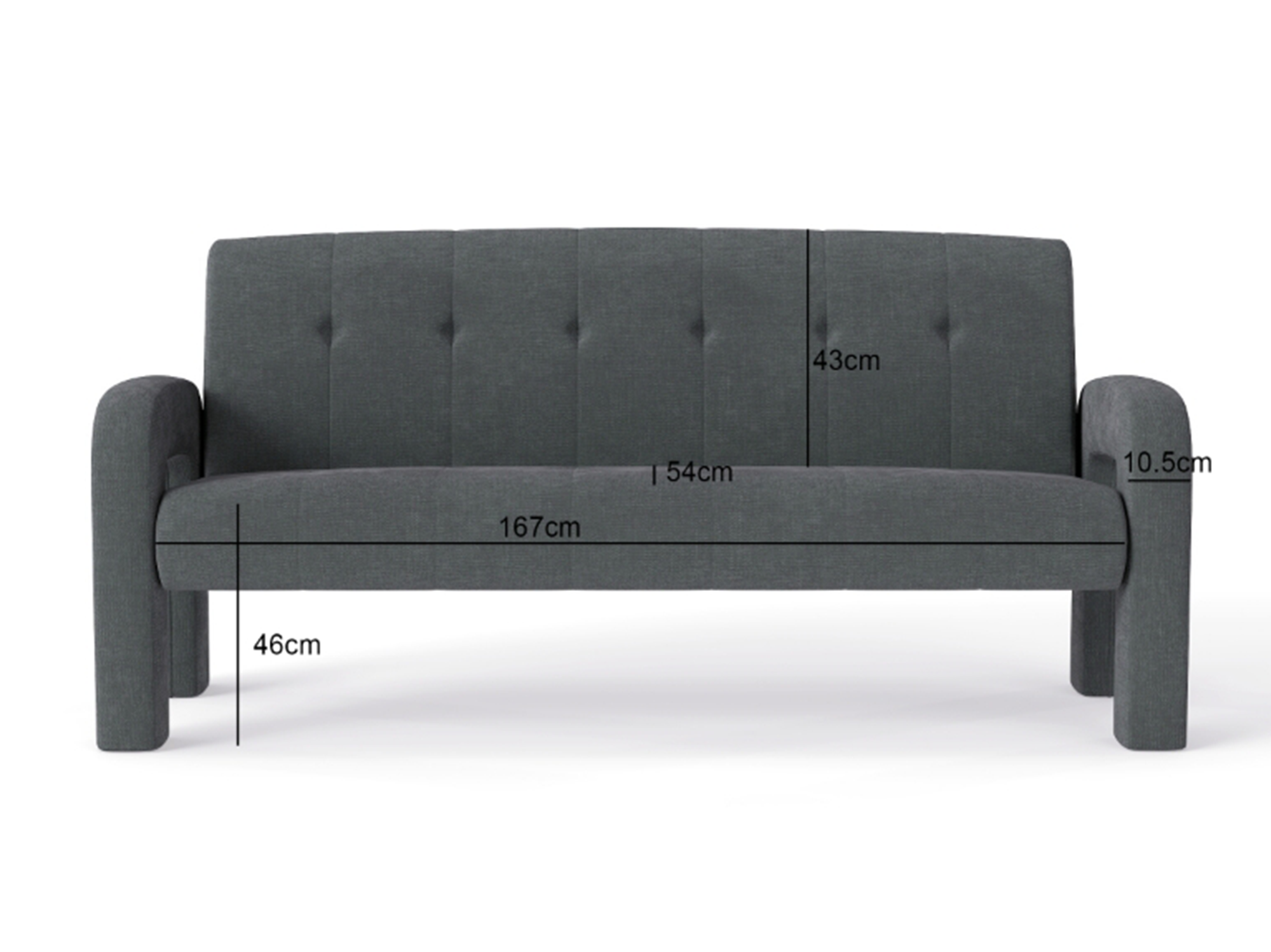 Seat Width: 164 cm | Seat Depth: 54 cm | Seat Height: 46 cm | Arm Height: 62.5 cm