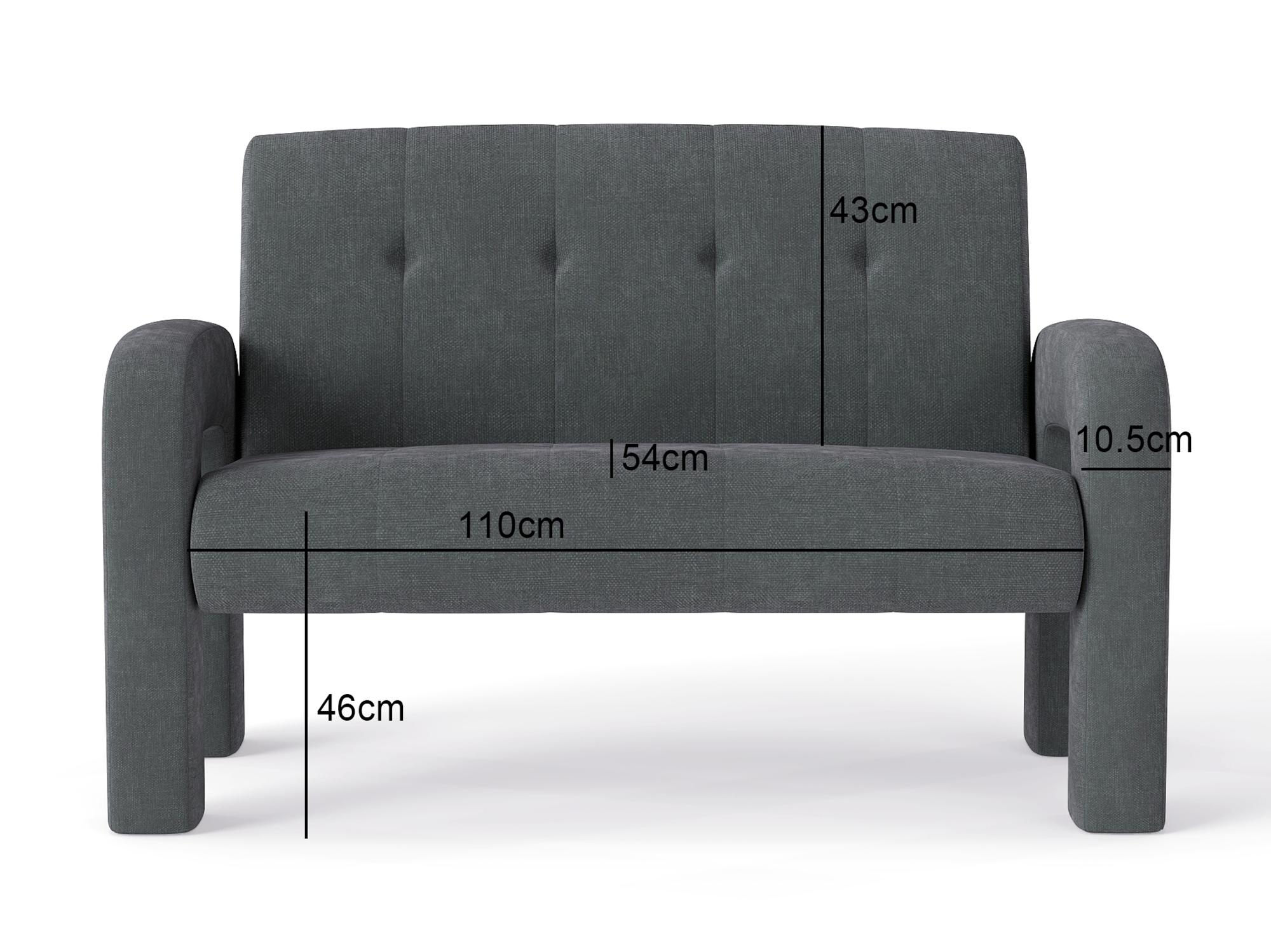 Seat Width: 107.5 cm | Seat Depth: 54 cm | Seat Height: 46 cm | Arm Height: 62.5 cm