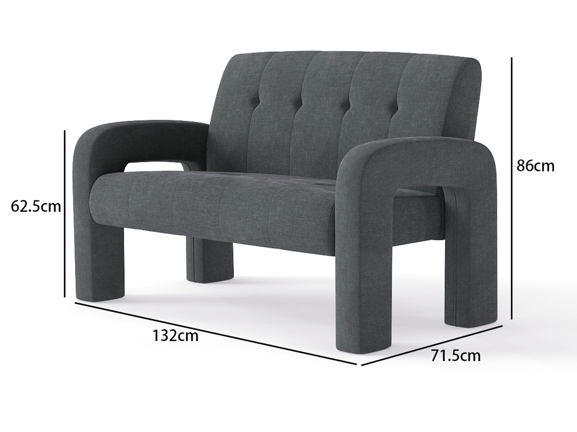 Overall Dimensions: 132 cm (L) x 71.5 cm (W) x 86 cm (H)