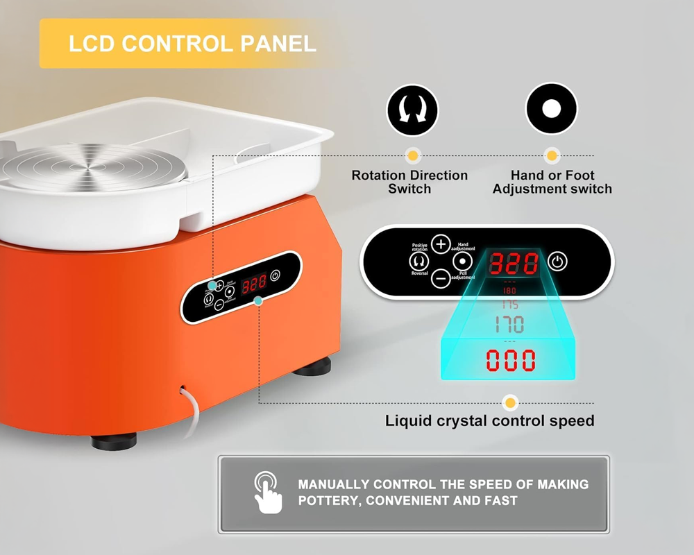 Pottery Wheel Machine 25cm Electric Pottery Wheel Machine with LCD Display & 350W Motor