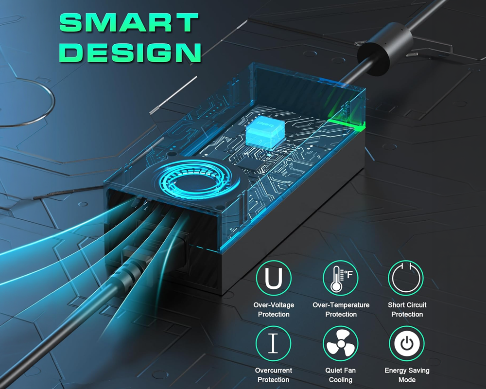 • Smart protection chip (overheat, overcurrent, overvoltage, short circuit)