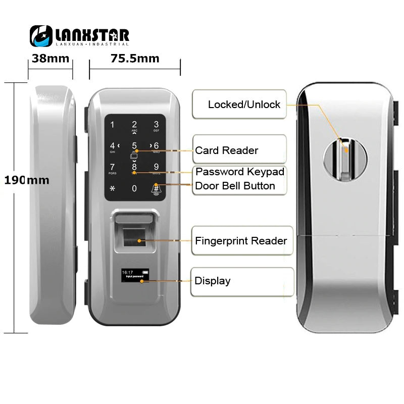 • Sleek & Stylish Design: This intelligent door lock not only provides top-notch security but also complements the aesthetics of modern glass doors with its sleek and minimalist design.