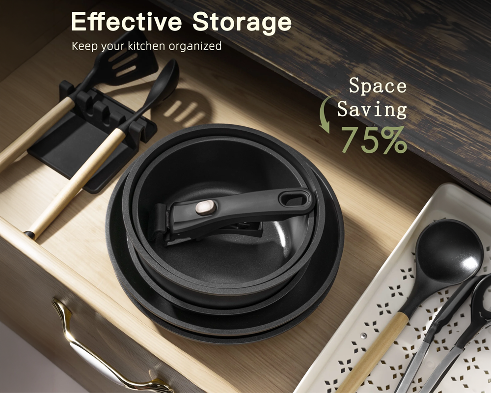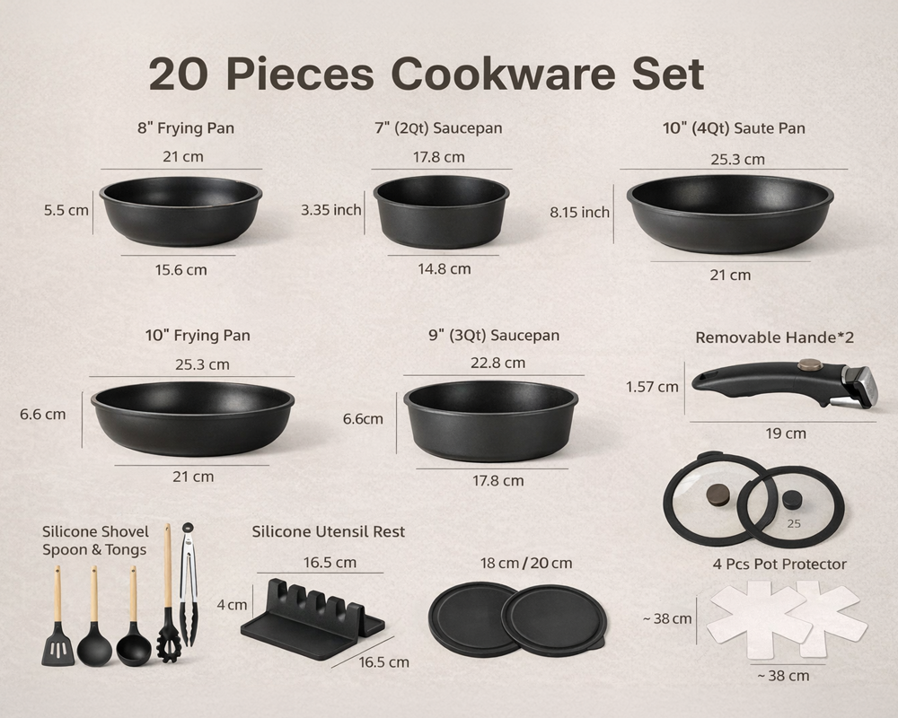 20 Piece Nonstick Pots and Pans Set – Detachable Handles Cookware Set