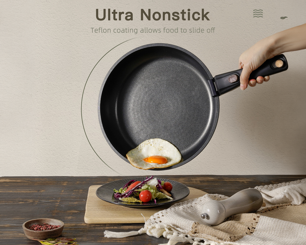 • Detachable handles provide flexibility for stovetop cooking, oven use, and compact storage.