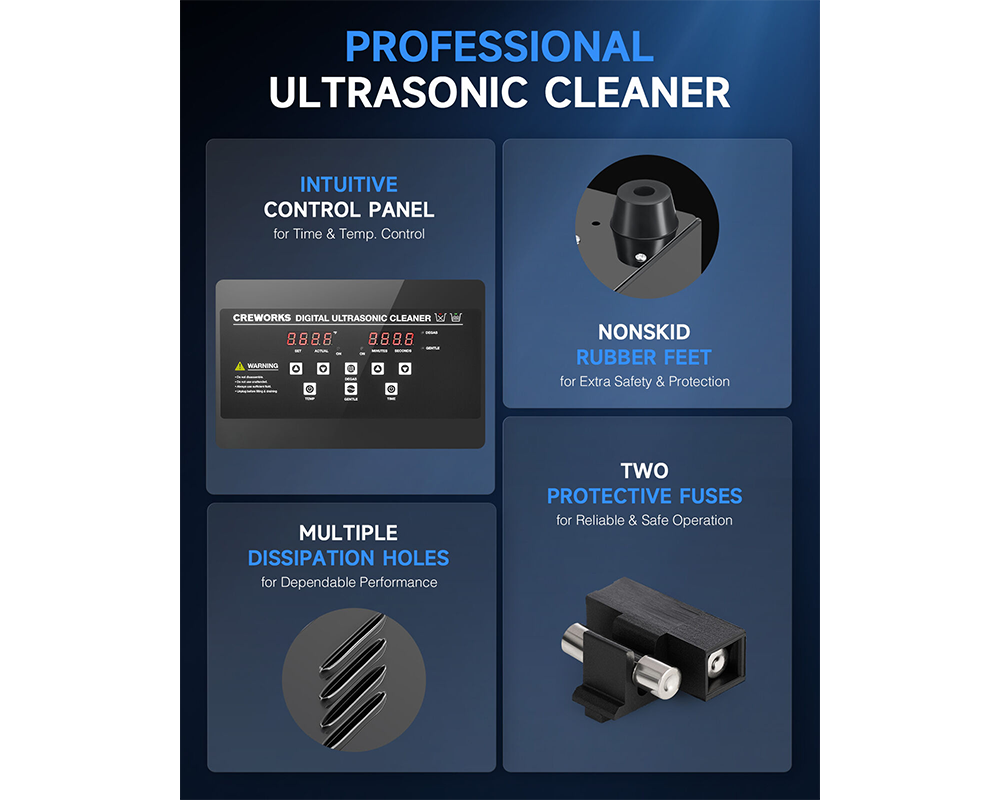 The upgraded transducers ensure strong yet controlled cleaning energy, making the ultrasonic cleaner ideal for workshops, dental labs, repair stations, and home users. With its large-capacity tank, the 30L ultrasonic cleaner lets you process multiple items in a single cycle. Combine that with the intuitive control panel and you get a highly efficient ultrasonic cleaning machine suitable for frequent use.