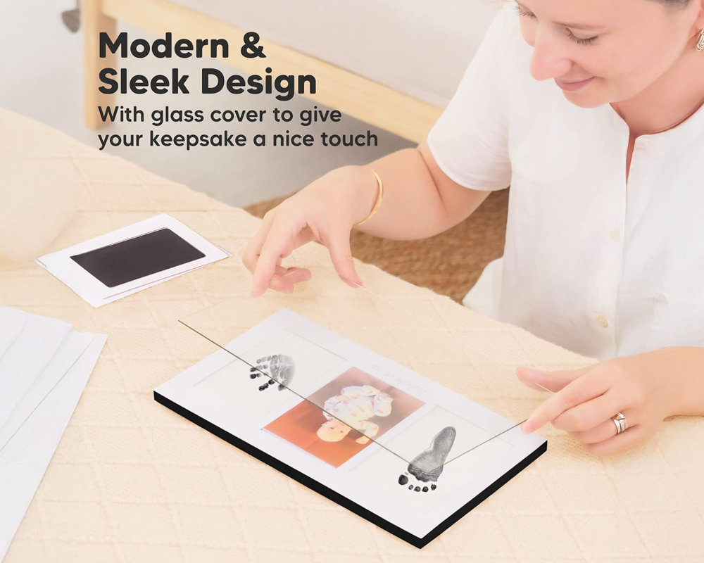 Capture your baby’s most precious moments with this Inkless Handprint Kit, an all-in-one Mess-Free Baby Memory Kit designed for newborns. Perfect for baby showers, gender reveals, or creating lasting memories, this Baby Keepsake Frame allows parents to make adorable hand and footprints without using ink, keeping delicate skin safe and clean. The premium quality frame and easy-to-use inkless pad ensure memories remain beautiful for years, making this kit an ideal gift for new parents, grandparents, or loved ones celebrating a newborn.