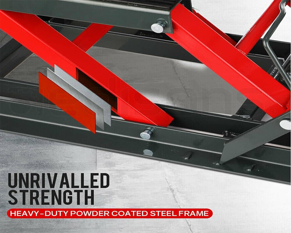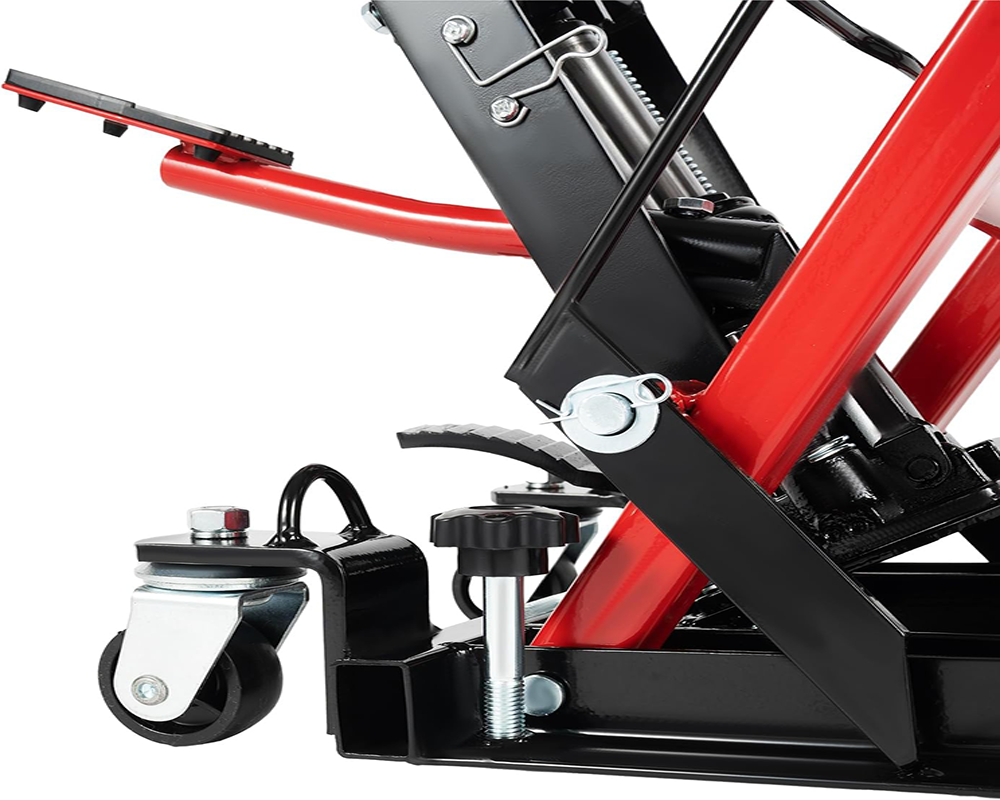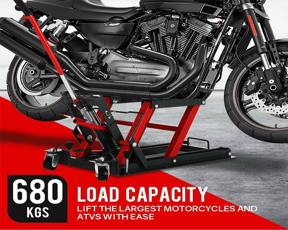 Designed for convenience, this Hydraulic Motorcycle Lift Jack includes caster wheels for easy movement and positioning. The Hydraulic Motorcycle Lift Jack is perfect for garages, workshops, and home use.