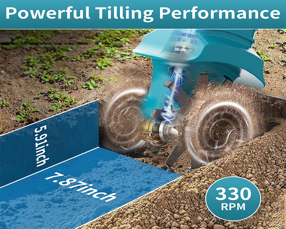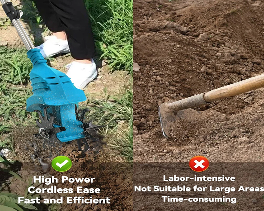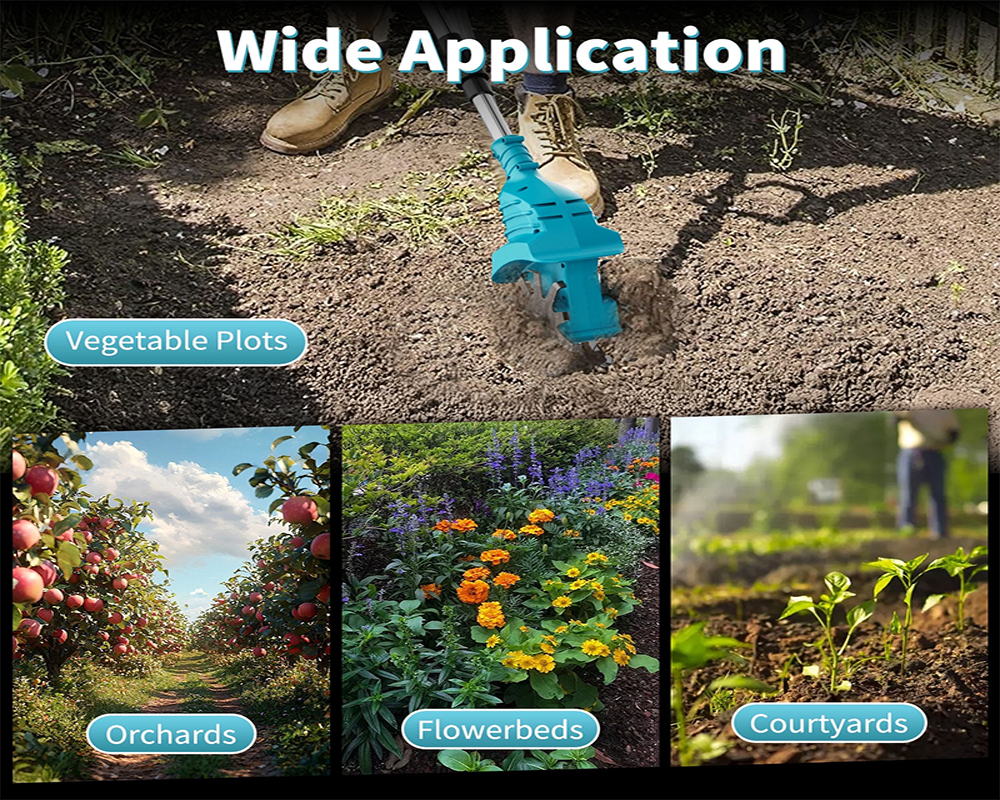 • Portable Structure: Easy-to-carry Cordless Electric Tiller Cultivator.