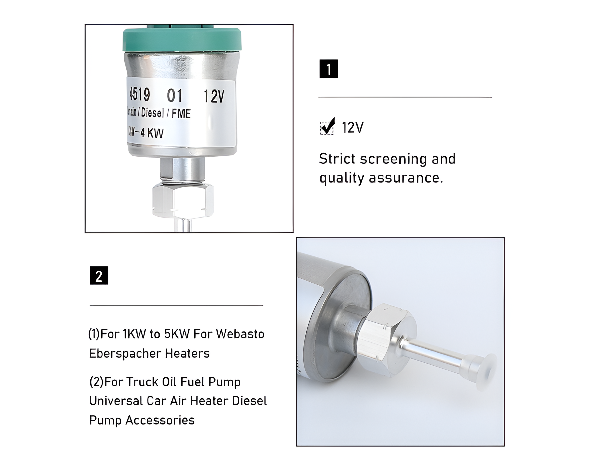 Premium Build Quality: Crafted from high-strength ABS and metal, the Car Diesel Heater Oil Fuel Pump ensures long-term durability, excellent corrosion resistance, and dependable performance.