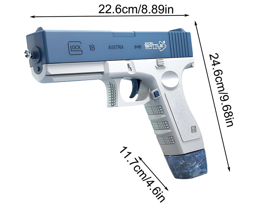 Electric Water Gun Pistol Battery Operated – Automatic Glock-Style Water Blaster for Kids & Adults (Blue & White)