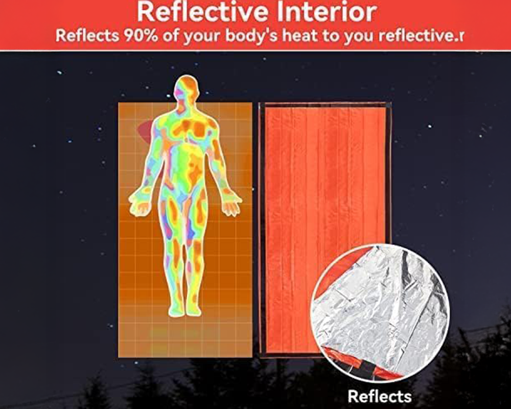 Heat Retention: The Emergency Sleeping Bag reflects up to 90% of body heat to help prevent hypothermia and shock.