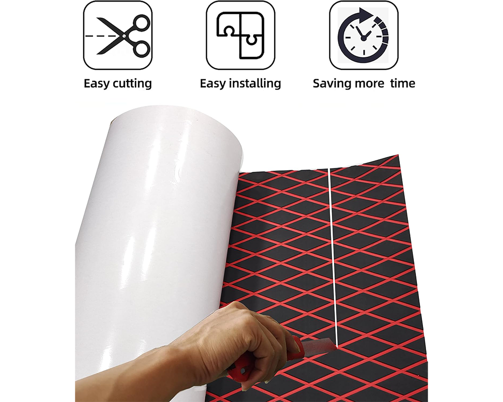 Easy Installation: Self-adhesive backing allows the Teak Boat Flooring Mat to be installed quickly—simply peel and stick to your deck surface.