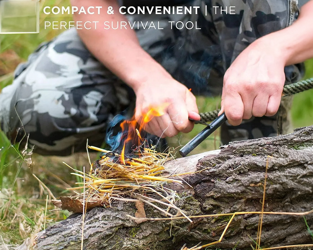 High-Performance Fire Starter: The Ferrocerium Fire Starter generates sparks effortlessly at 3,000°C, even in wet or windy conditions, providing reliable fire-starting power.