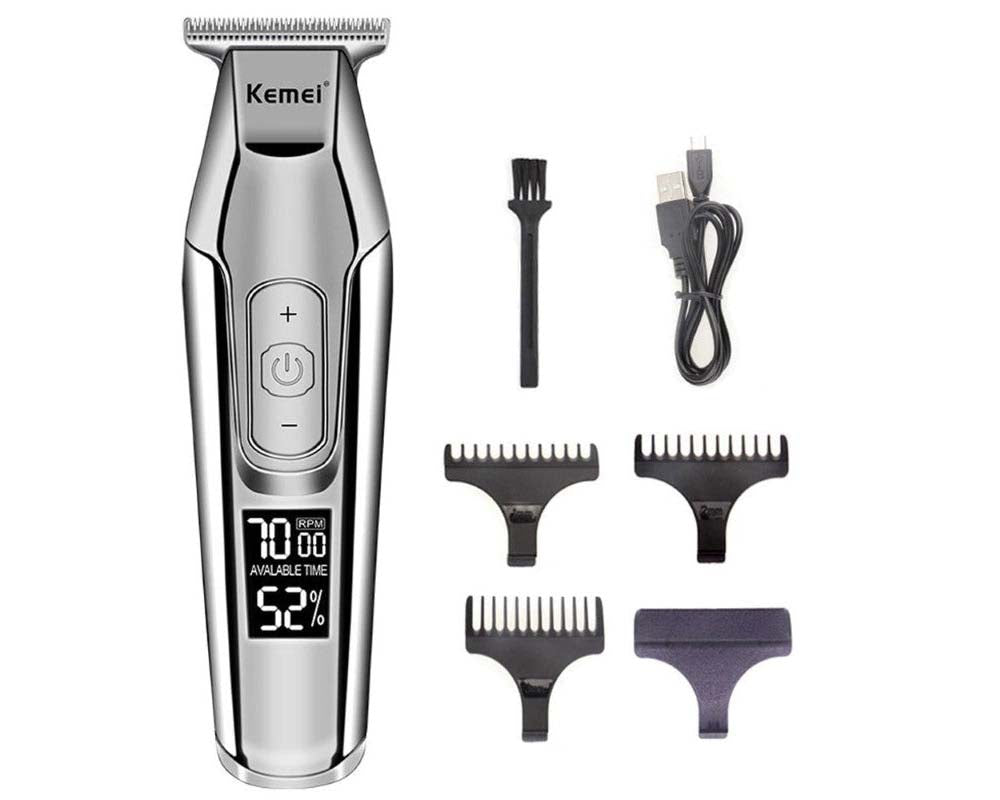 Kemei Cordless Rechargeable Hair Trimmer Clipper with LCD Display – Professional 0mm Baldheaded Beard Trimmer