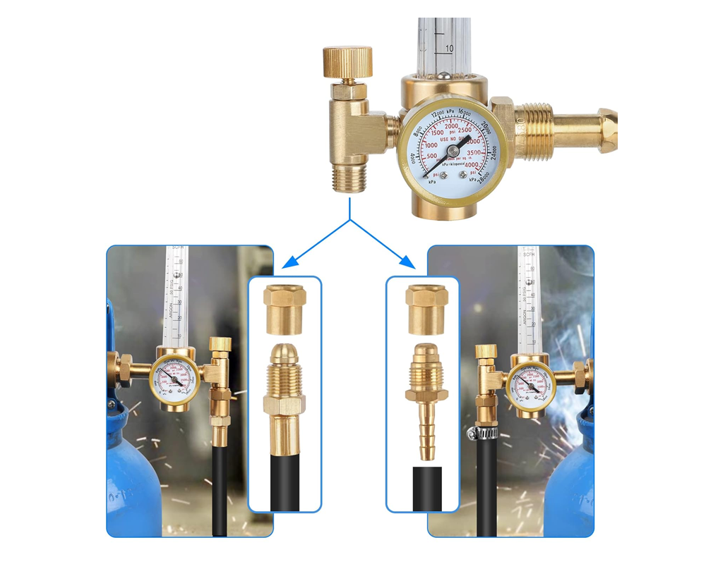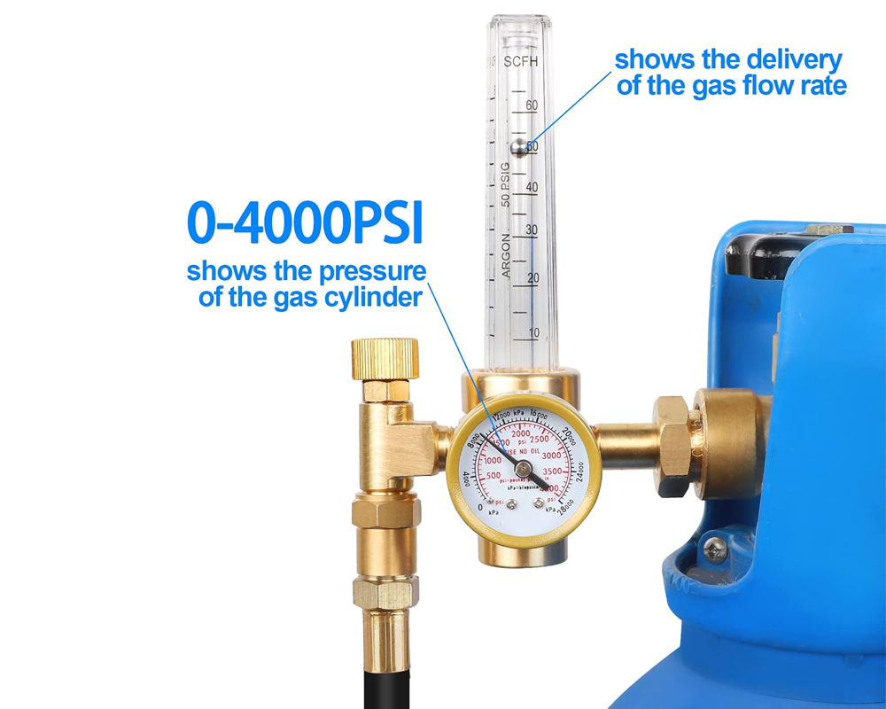 Precision Gas Flow Control: The Welding Gas Regulator allows adjustable gas flow from 10 to 60 CFH for accurate welding performance.
