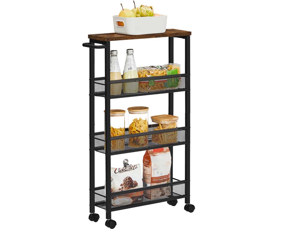 Breathe new life into unused corners with the VASAGLE Serving Trolley, designed to transform empty gaps into functional niches. Its narrow shape (13 cm wide) fits perfectly into any corner, offering 4 levels of storage to organize tea cups, tea bags, sugar, napkins, and more.