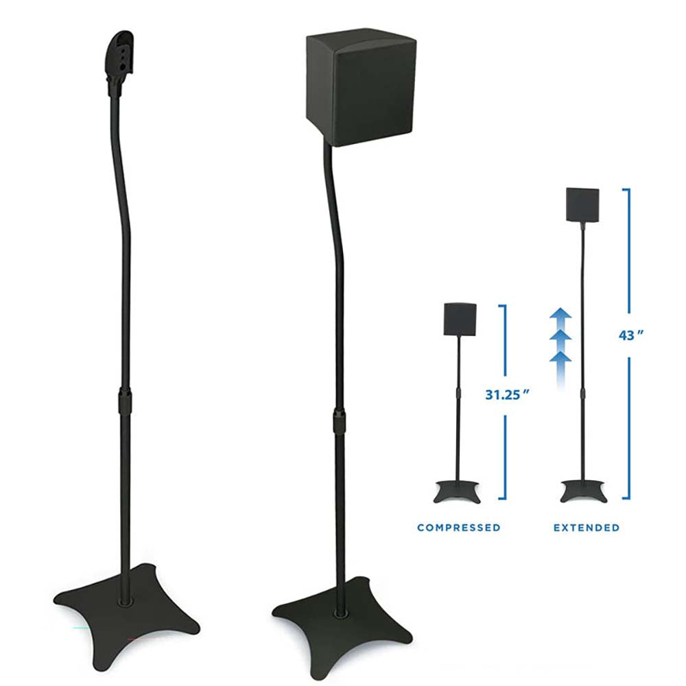 Adjustable Height: The pole height is adjustable from 26.8 inches (680mm) to 43.3 inches (1100mm), allowing optimal speaker placement for stereo or surround sound.