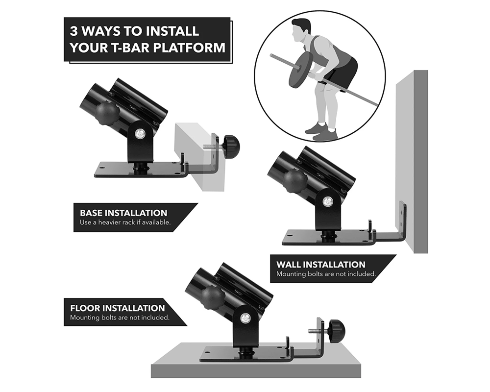 The T Bar Row Landmine Platform securely fits both 1" standard and 2" Olympic barbells, using a strong locking knob to keep the bar firmly in place during intense workouts.