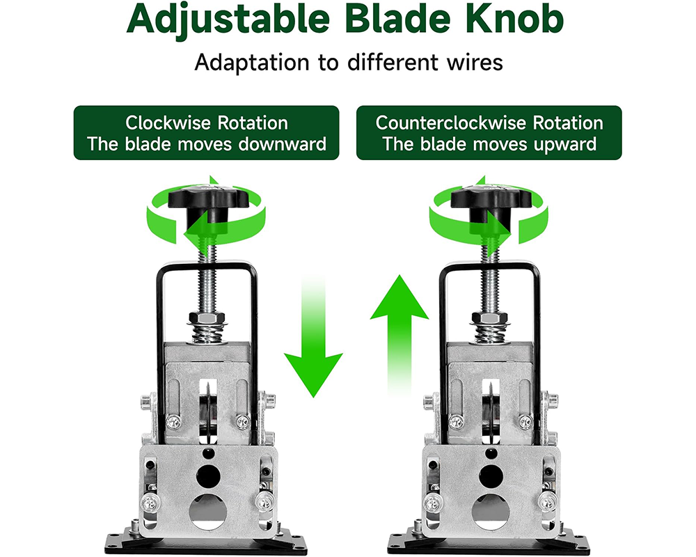 Equipped with hardened white steel blades, this Manual Wire Stripping Machine ensures sharp, precise cuts with long-lasting durability. The non-slip V-shaped feeder pulleys keep wires stable, making this Manual Wire Stripping Machine safe and easy to use.