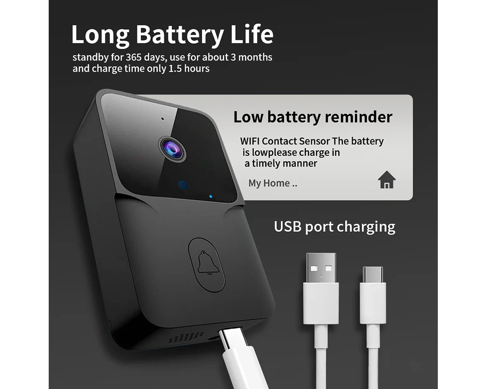 Long Battery Life: The Wireless Doorbell Camera runs up to a month on a 1.5-hour charge.